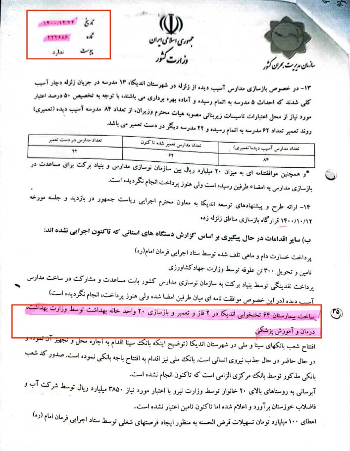 عملیات احداث بیمارستان ۶۴ تختخوابی اندیکا چه زمان شروع می شود؟