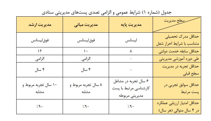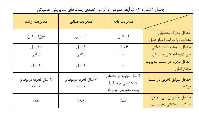 و داشتن سابقه مدیریتی یا تجربه خدمت مرتبط (برای سمت‌های پایه و عملیاتی).